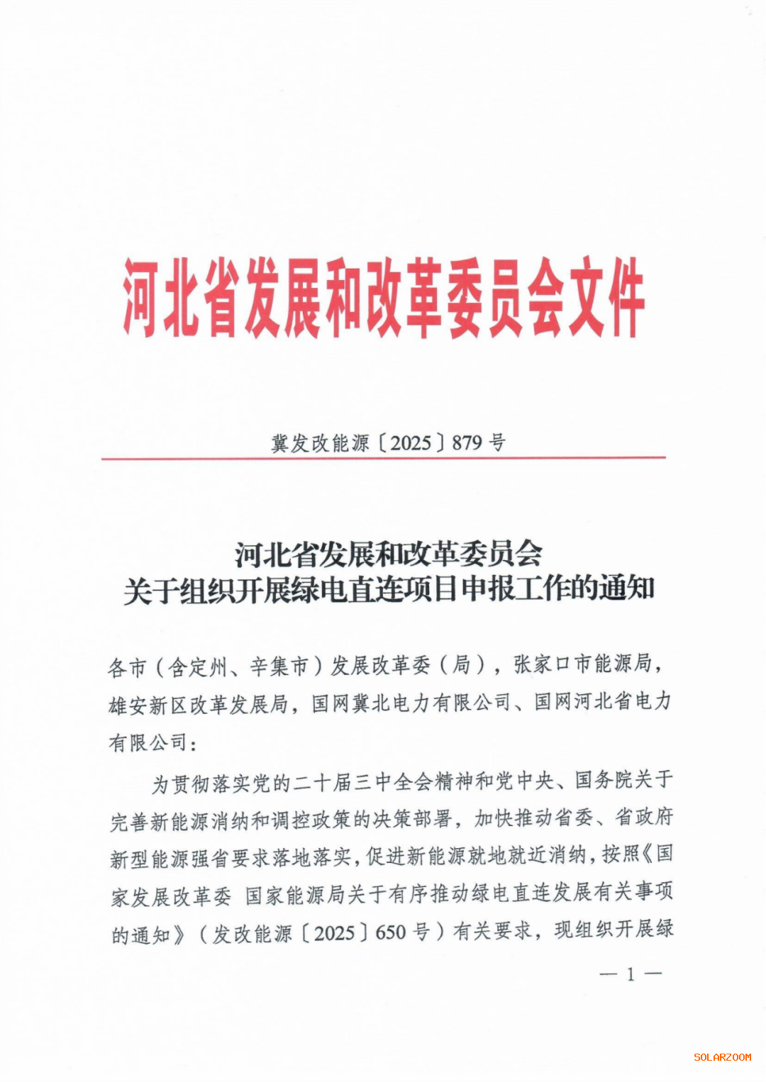 8月4日,河北省发改委下发《关于组织开展绿电直连项目申报工作的通知》,明确: