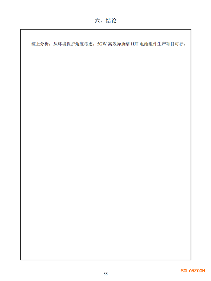 最终环评文件显示,从环境保护角度考虑,5GW 高效异质结 HJT 电池组件生产项目可行。
