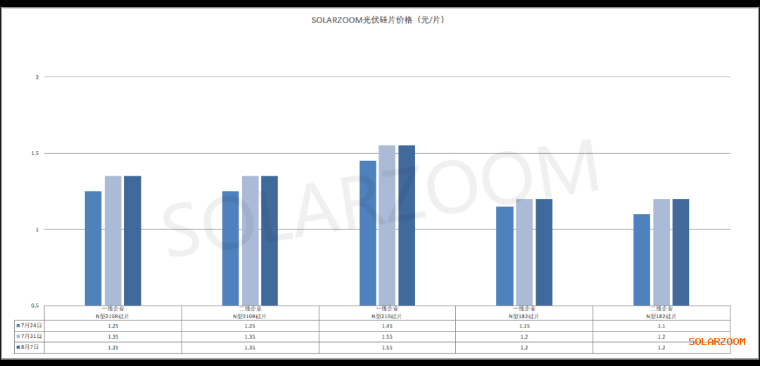 排产方面,近期在下游出口退税继续优化的预期下以及美国抢装拉动部分海外地区出货等影响,光伏下游环节出口明显提升,也带动了整体硅片需求的出货,八月国内硅片整体排产小幅提升,预计提产在1-2GW左右。HJT硅片方面,本周HJT半片价格随主流210尺寸硅片价格波动而调整,上周HJT半片价格回升至0.64-0.65元/片区间,高位价格也开始有成交;本周随着N型210硅片价格继续上调而小幅上涨至0.69-0.7元/片区间,近期下游HJT电池排产未见起色,HJT硅片需求较为平平。