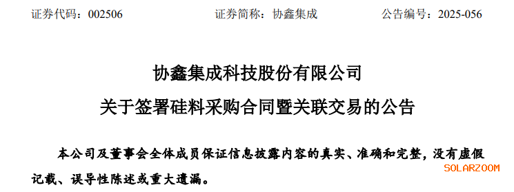 8月7日,协鑫集成(SZ:002506)发布公告,公司全资子公司协鑫集成科技(苏州)有限公司于2025年8月7日与江苏中能硅业科技发展有限公司签订了《产品购销框架合同》。