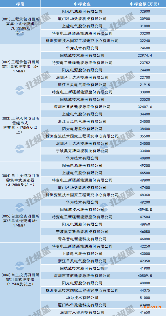 根据公示结果,阳光电源股份有限公司、厦门科华数能科技有限公司、上能电气股份有限公司、特变电工新疆新能源股份有限公司、株洲变流技术国家工程研究中心有限公司、华为技术有限公司、固德威技术股份有限公司、深圳科士达科技股份有限公司、浙江日风电气股份有限公司、深圳市首航新能源股份有限公司、宁波奥克斯甬能科技有限公司、青岛智电新能科技有限公司、深圳市禾望科技有限公司13家企业入围。
