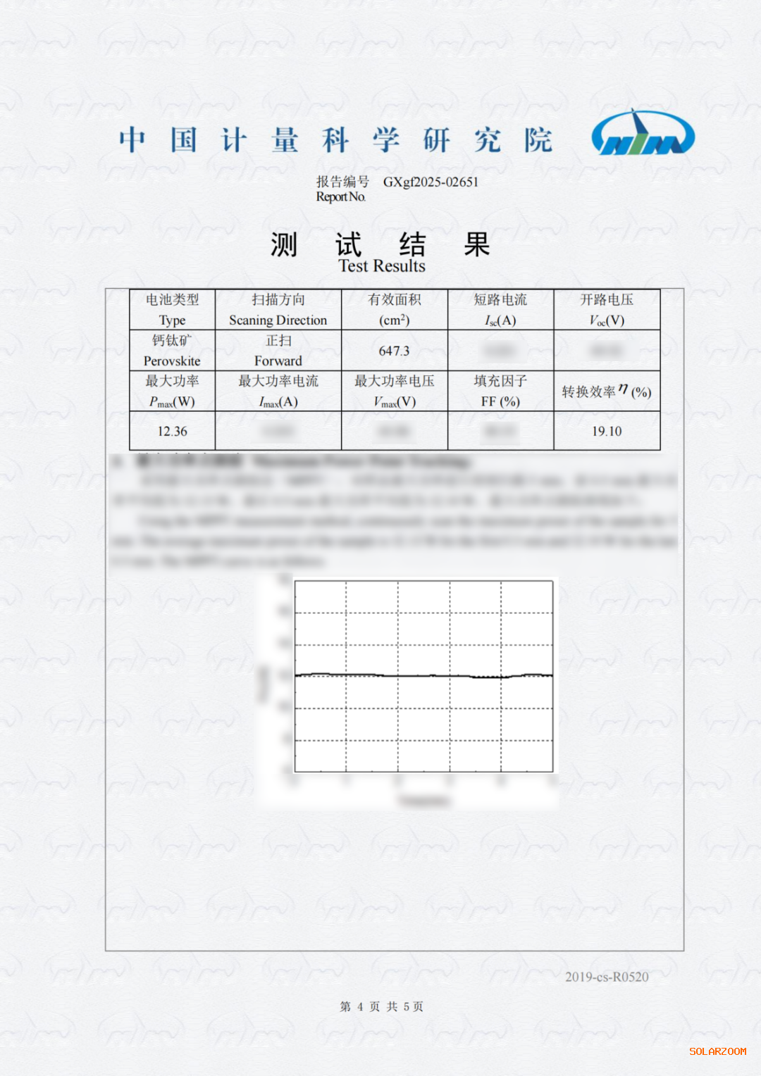 8月19日,据“晶皓新能源”微信公众号消息,其研发的30cm*30cm大尺寸超薄柔性钙钛矿太阳能电池,经中国计量科学研究院权威认证,光电转化效率达到 19.10%,成功刷新该领域的纪录。