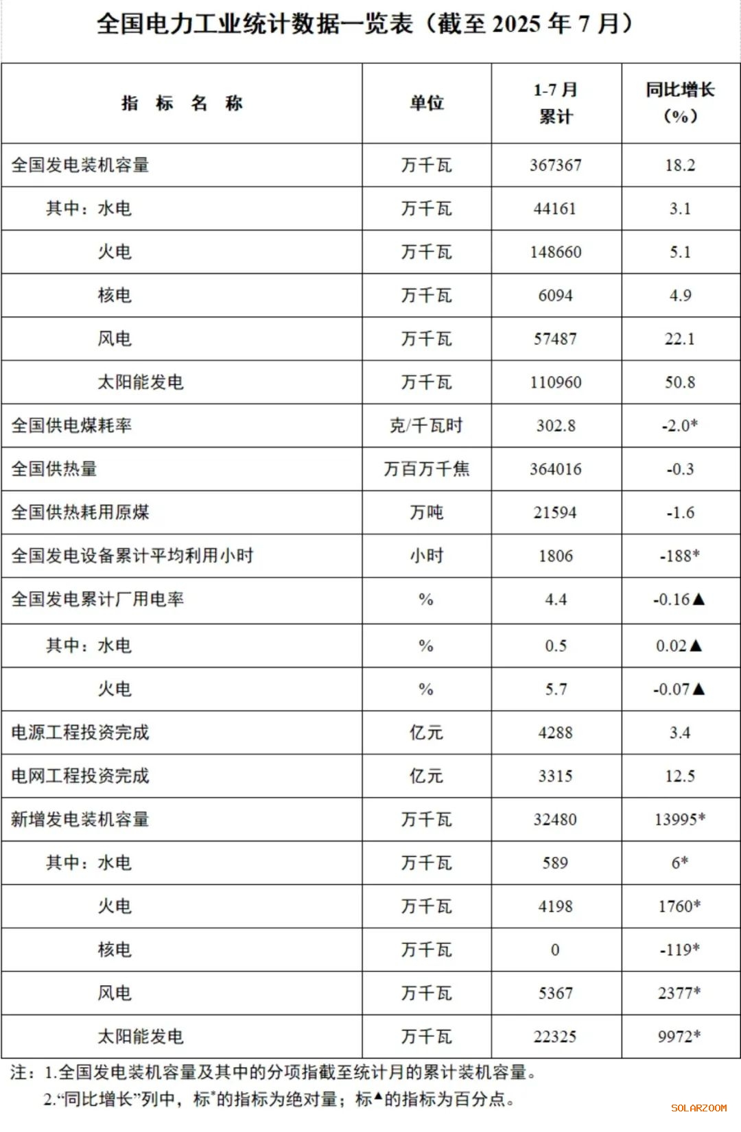 8月23日,国家能源局发布1-7月份全国电力工业统计数据。