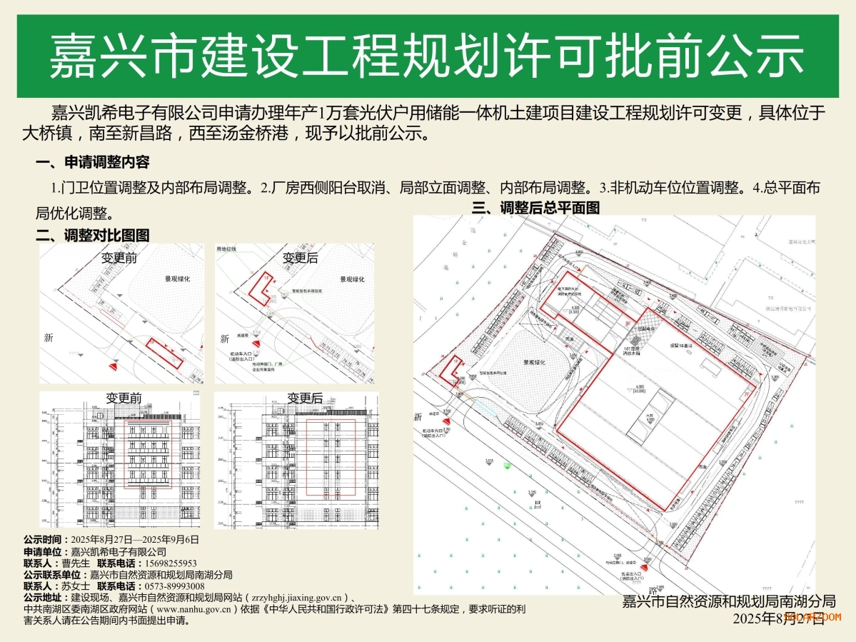 嘉兴凯希电子有限公司年产1万套光伏户用储能一体机土建项目(变更)--批前公示
