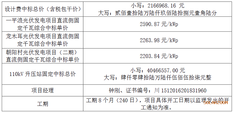 9月3日,一平浪光伏发电项目、龙木耳光伏发电项目、朝阳村光伏发电项目(二期)设计、采购、施工总承包(EPC)项目中标结果公布。