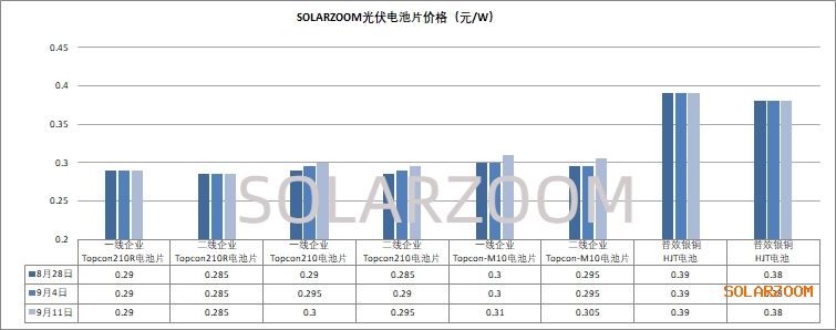 在上游硅料及部分尺寸硅片价格持续上涨的推动下,国内非主导尺寸的电池价格也是同步顺涨,顺涨尺寸主要为N型M10L和G12电池。各尺寸电池方面,N型M10L电池涨价幅度最大,当前N型183尺寸电池整体产出规模有限,而出口海外需求不减反增,出口海外的高位价格甚至来至0.32元/W左右,这也带动了国内市场价格的上涨,本周国内N型M10L电池价格涨至0.31元/W左右;其次大尺寸G12电池在国内部分集中式项目交货需求的带动下也小幅上涨至0.3元/W左右。而市场产出最多的N型G12R尺寸电池议价能力偏弱,同时对应上游尺寸的硅片价格也未有变动的情况下,G12R电池价格继续维持在0.285-0.29元/W区间。HJT电池方面,当前国内HJT电池产线排产未有太大波动,面对下游现有的HJT电池需求以及HJT电池成本下,HJT电池在产企业坚挺价格意愿明显,当前HJT电池国内价格为0.36-0.4元/W区间,出口海外的急单价格有一定溢价。