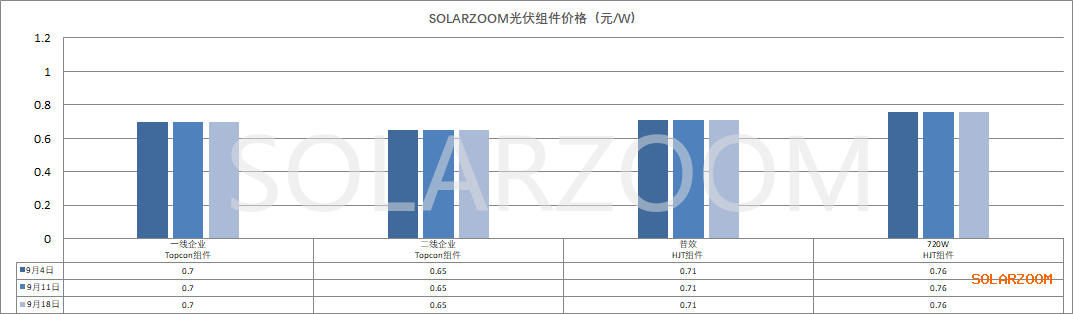辅材方面,9月国内玻璃厂商对光伏玻璃报价进行大幅上涨,上涨幅度在2元/㎡左右,2.0mm的光伏玻璃价格报价从11.5元/㎡上涨至13.5元/㎡,3.2mm光伏玻璃价格报至20元/㎡左右,9月价格预计暂不会有调整。