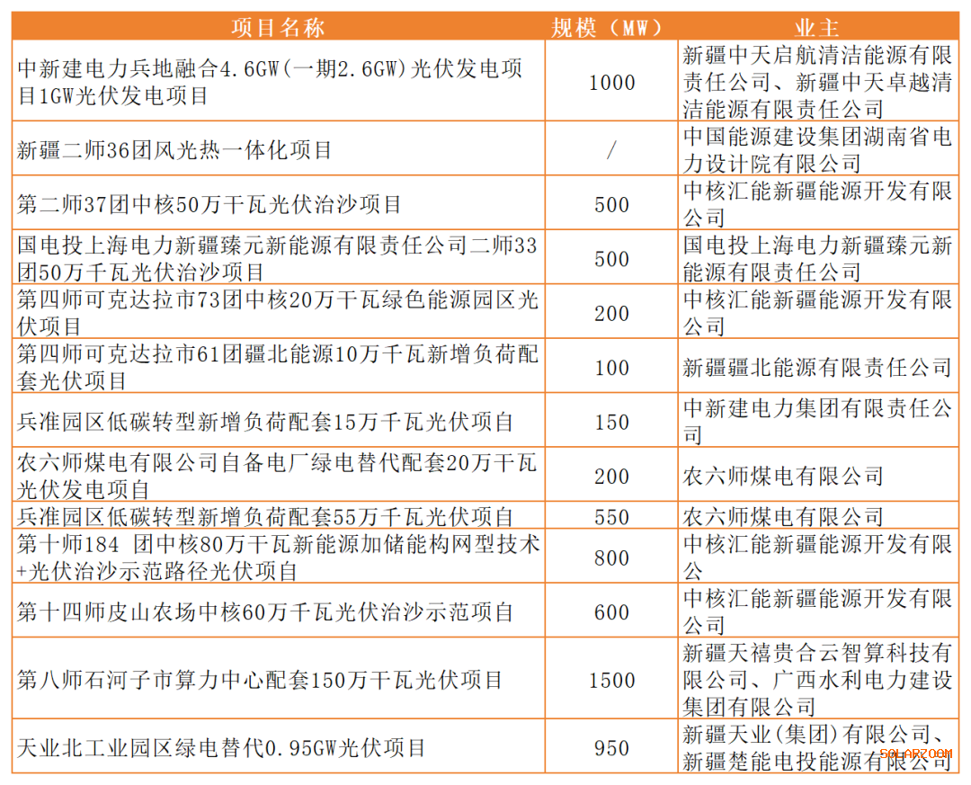 今年以来,新疆兵团六个师公示了13个光伏项目移出市场化并网新能源项目清单,项目清单共计7050MW,涉及企业包括中国能建、中核、国家电投等电力央企以及疆北能源、中新建电力、农六师煤电、新疆天业等地方国企。