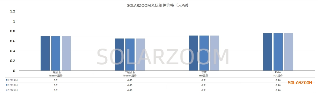 本周组件价格区间仍未有变动,分布式项目方面国内头部企业组件价格继续维持在0.68-0.7元/W,但在交付上价格尚有0.01-0.0.2元/W的让步空间;集中式项目方面,市场新招投标项目的观望等待情绪不减,市场上虽有部分集中式项目因上游价格上涨,成本上升而在继续观望延迟,但部分集中项目预计将在四季度启动,交付价格上在与买卖双方胶着博弈。供需方面,恰逢十一长假,受上游成本压力的影响,国内部分组件企业计划十一将放假减产。