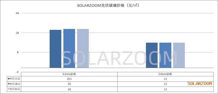 辅材方面,9月国内玻璃厂商对光伏玻璃报价进行大幅上涨,上涨幅度在2元/㎡左右,2.0mm的光伏玻璃价格报价从11.5元/㎡上涨至13.5元/㎡,3.2mm光伏玻璃价格报至20元/㎡左右,临近月末国内市场上继续上调玻璃价格氛围不减反增,但最终能否上涨,上涨幅度也仍需与组件端继续博弈。