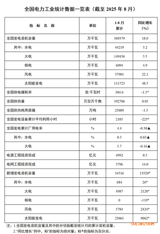 9月26日,国家能源局发布1-8月份全国电力工业统计数据。
