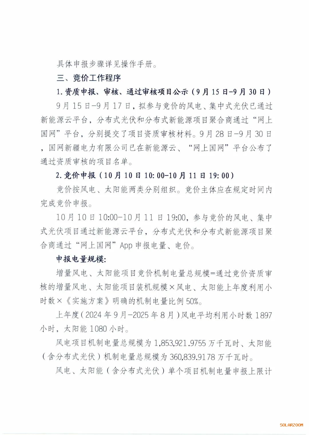 增量风电、太阳能项目竞价机制电量总规模=通过竞价资质审核的增量风电、太阳能项目装机规模×风电、太阳能上年度利用小时数×《实施方案》明确的机制电量比例50%。