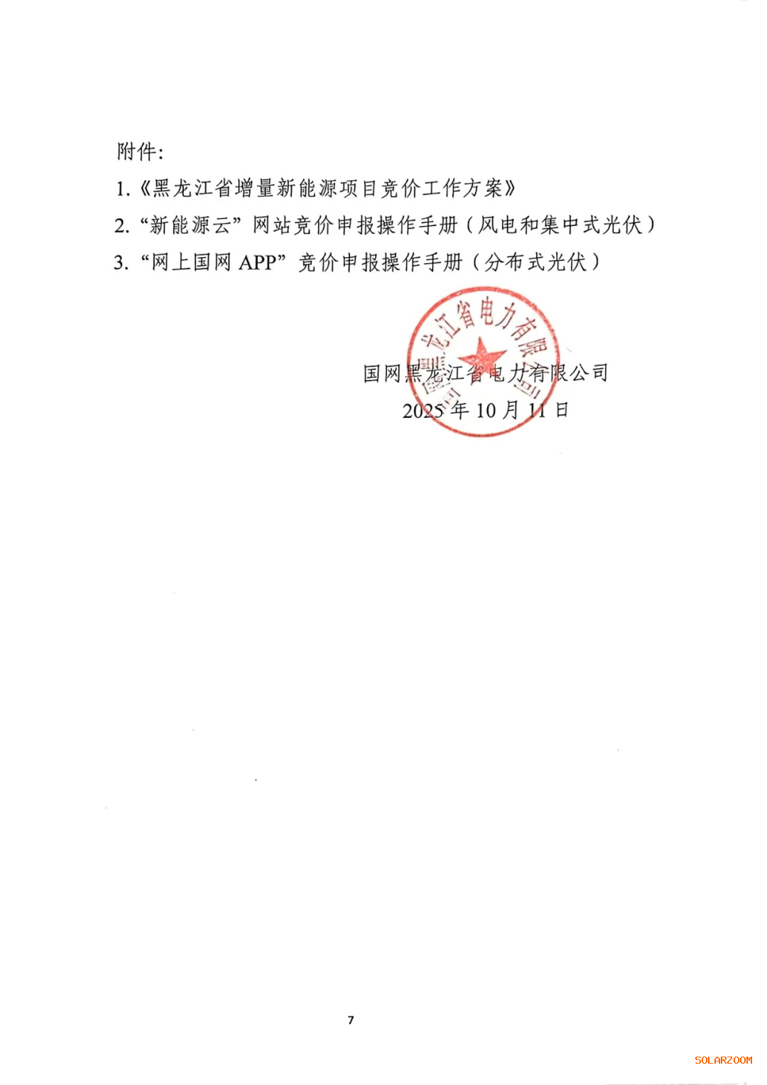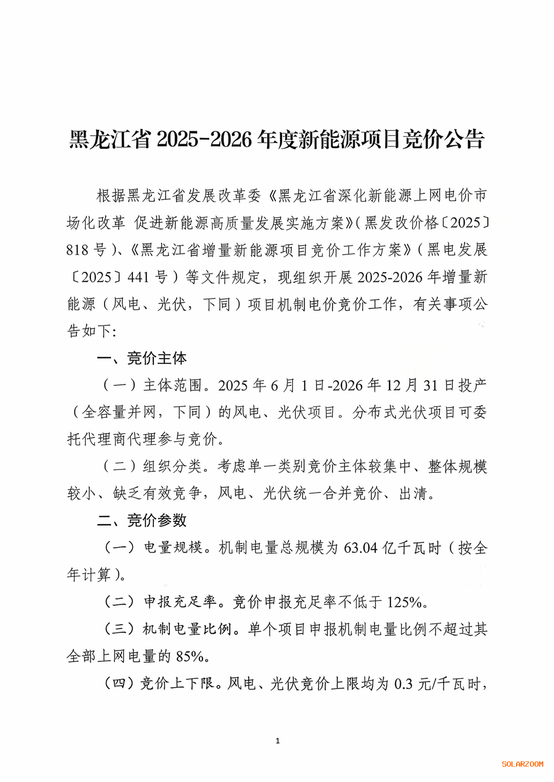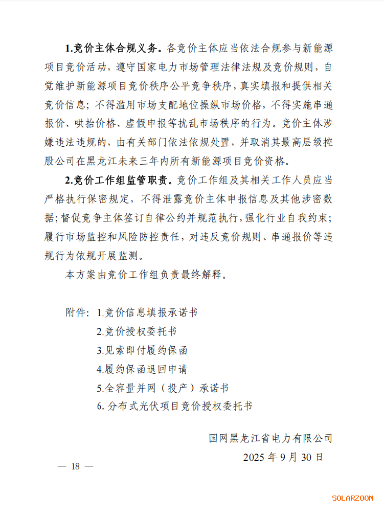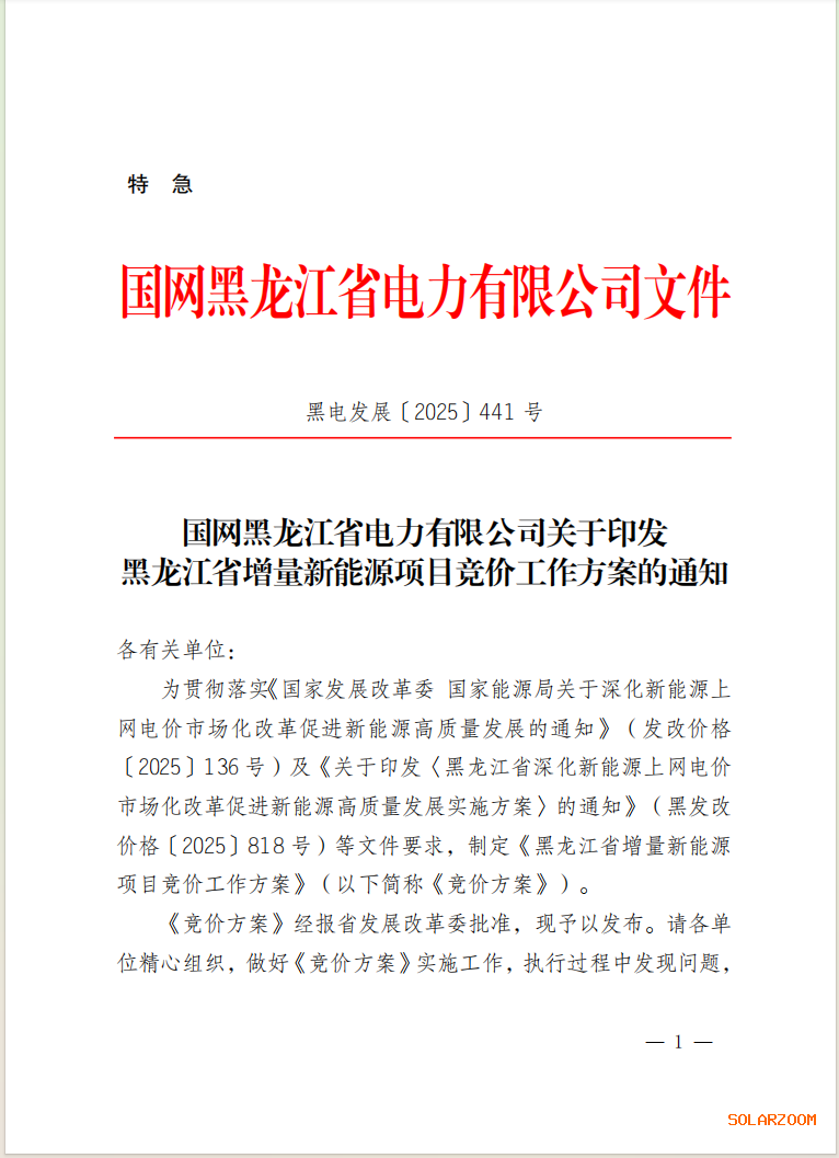 10月11日,国网新能源云发布黑龙江《2025-2026年度新能源项目竞价》公告,同步发布《黑龙江省增量新能源项目竞价工作方案》。