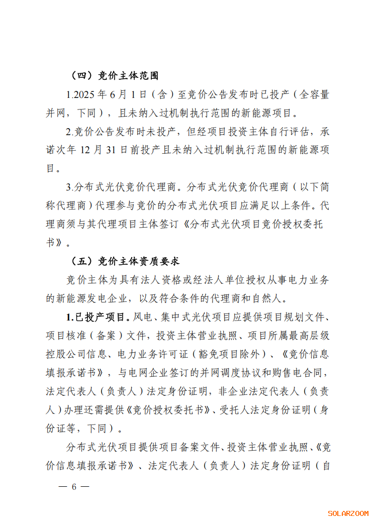 根据公告,本次竞价主体范围:2025年6月1日—2026年12月31日投产的光伏、风电项目。