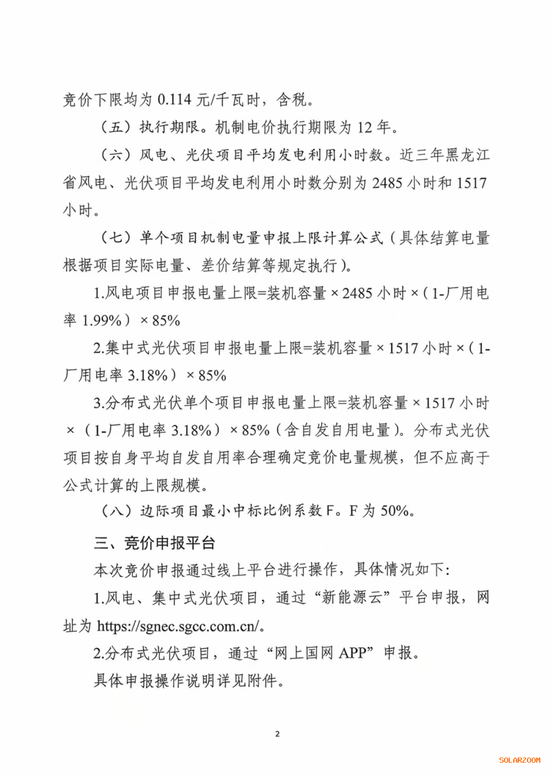 机制电量规模:63.04亿度,申报充足率不低于125%,单体项目申报比例为85%,执行期限12年。