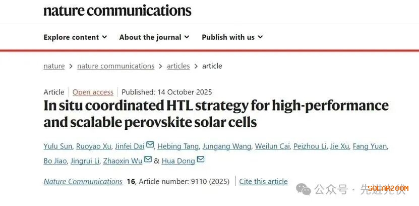 Sun, Y., Xu, R., Dai, J. et al. In situ coordinated HTL strategy for high-performance and scalable perovskite solar cells. Nat Commun 16. 9110 (2025).