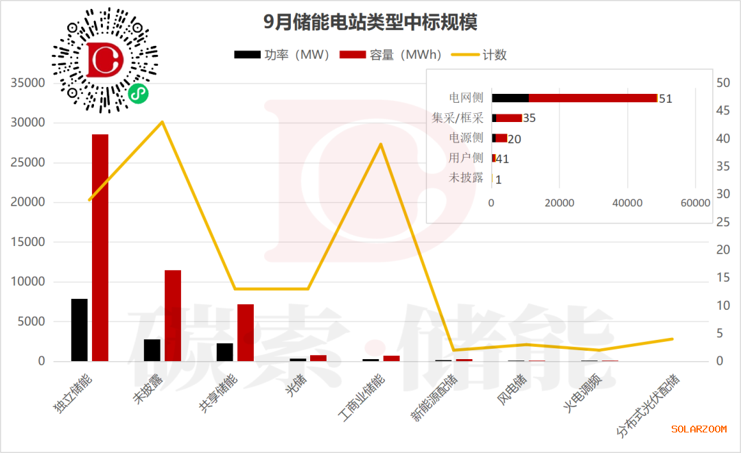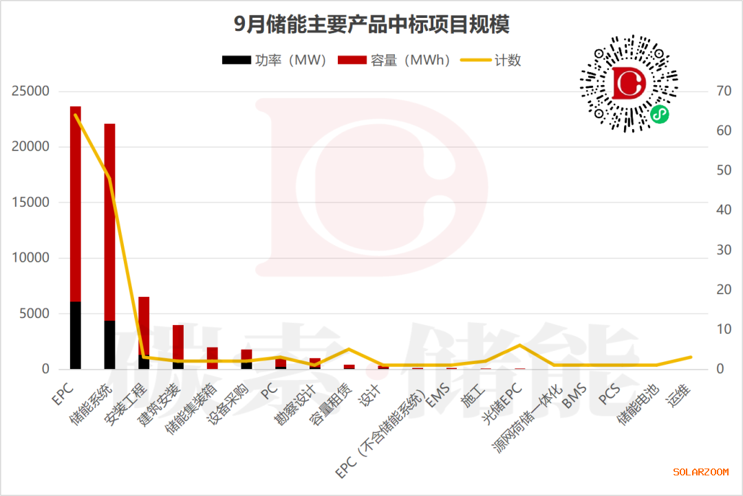 9月,储能中标项目规模达13.91GW/49.37GWh,呈现出诸多值得关注的特点。