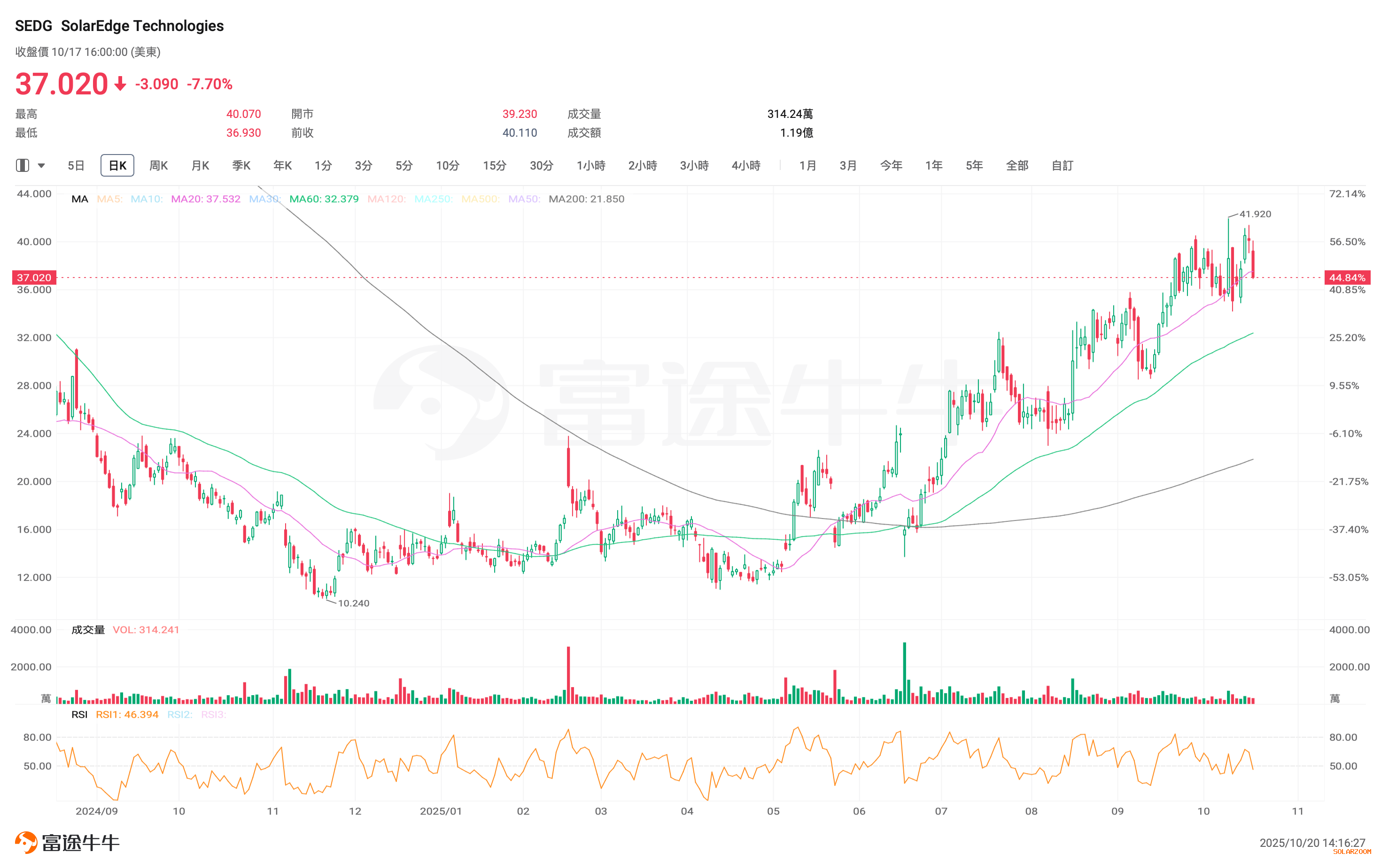 以逆变器巨头 $SolarEdge Technologies (SEDG.US)$ 为例,今年以来股价反弹涨超170%,从年初低点回升至约40美元附近。 $Sunrun (RUN.US)$ 年初以来涨超110%,$Shoals Technologies (SHLS.US)$涨超70%。