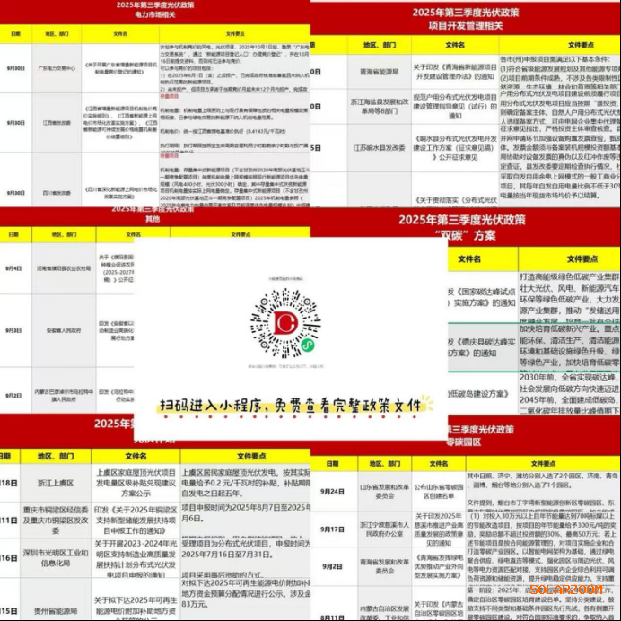 光伏产业的发展离不开政策推动和支持。今年三季度,国家发改委、国家能源局、工信部等多部门与28省、市地方政府协同发力,共发布148条光伏相关政策。特别是在9月发布的《电力装备行业稳增长工作方案(2025—2026年)》中明确提出“扩大国内有效需求,加快推进陆上大型风电光伏基地建设”,而风光大基地作为实现36亿千瓦目标的核心抓手,其持续推进直接印证了未来十年风电光伏开发的广阔空间。