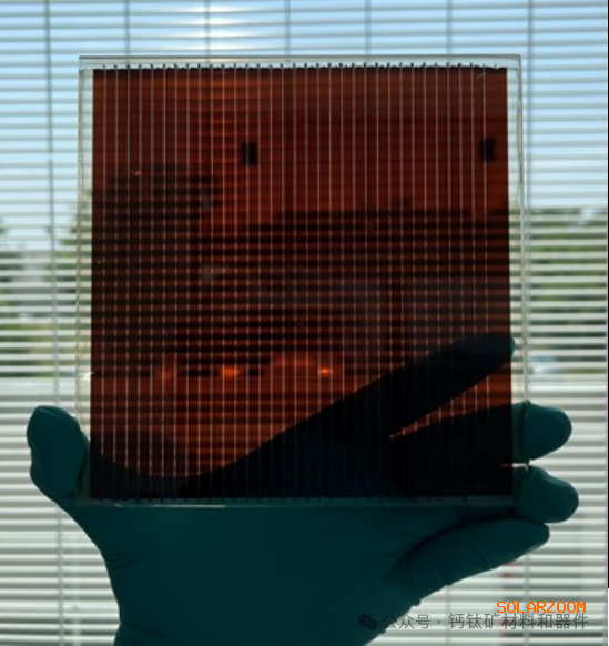 IPVF 制造的 13 cm x 13 cm 双面钙钛矿微型组件,采用完全与工业相关的制造工艺 图片:IPVF