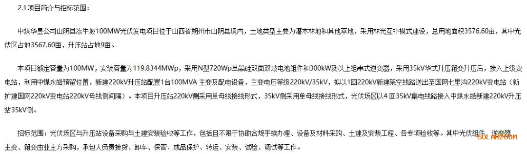 4、中煤华昱公司山阴县冻牛坡100MW光伏发电项目工程PC采购项目
