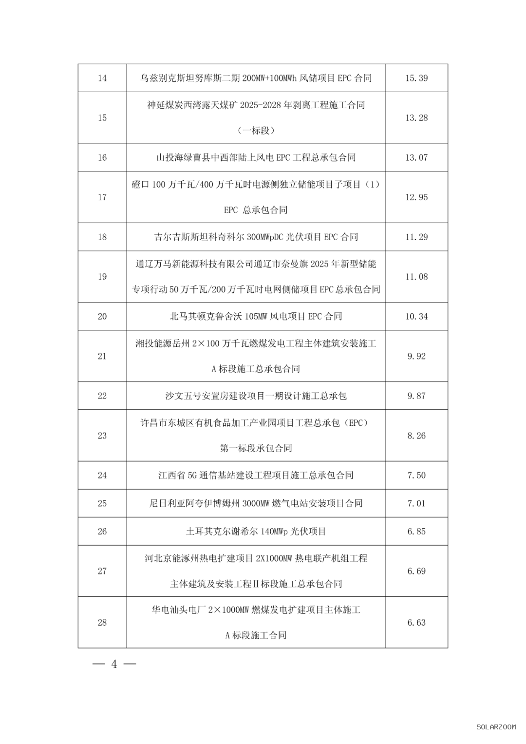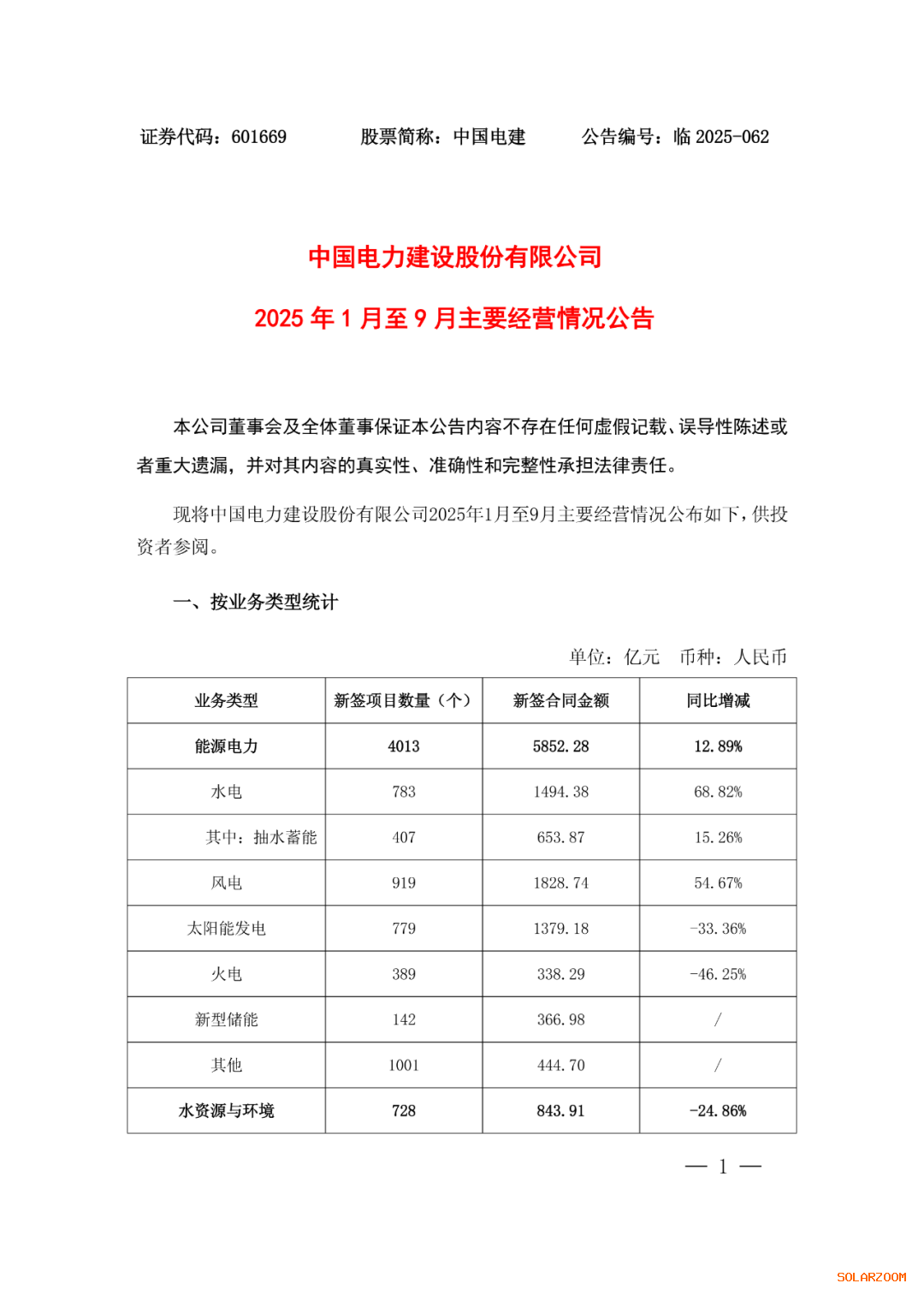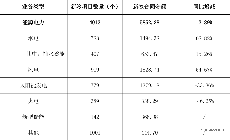 能源电力方面,新签合同金额5852.28亿元,同比增长12.89%。其中,新签太阳能发电项目779个,金额共1379.18亿元;新签风电项目919个,金额共1828.74亿元。