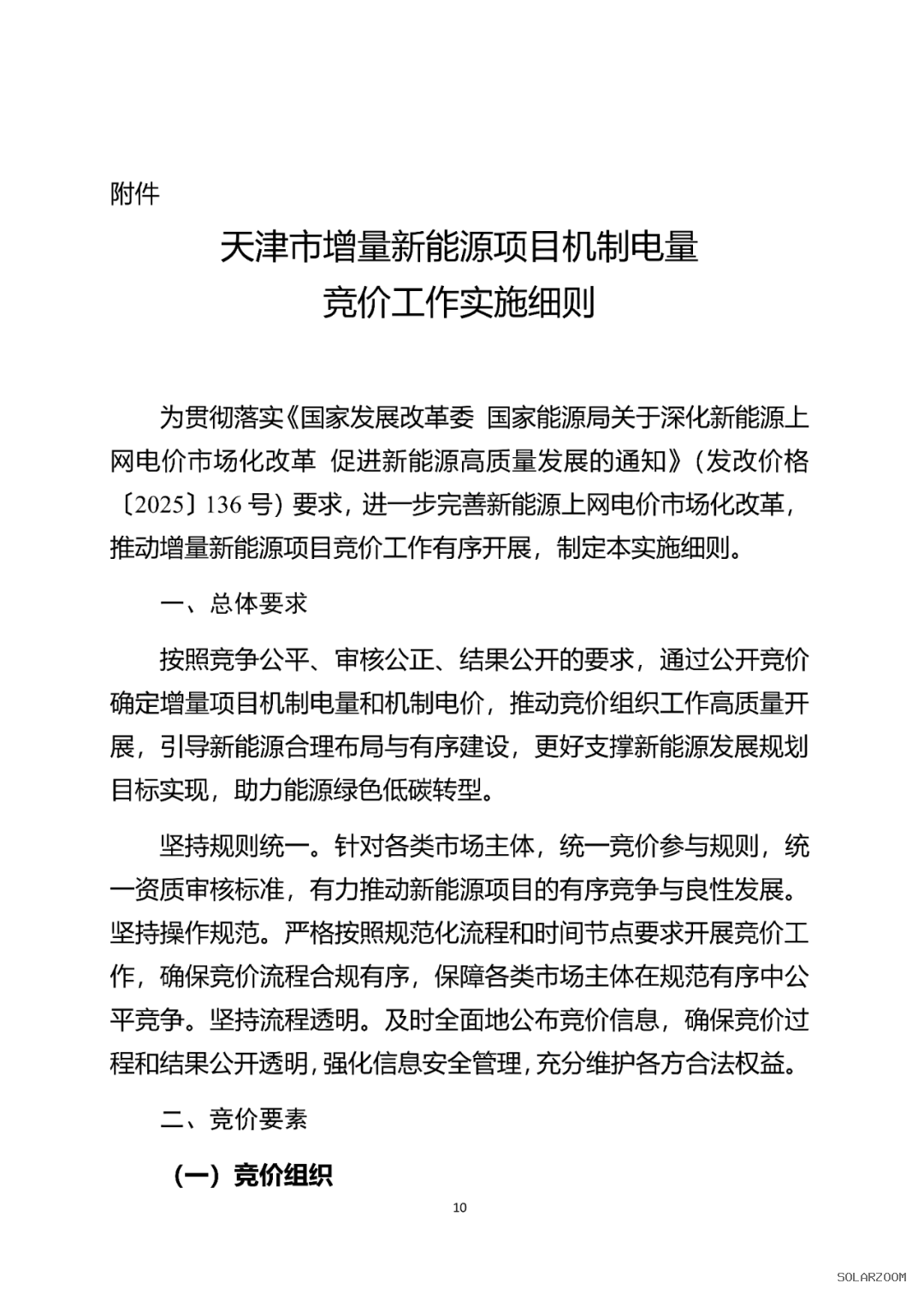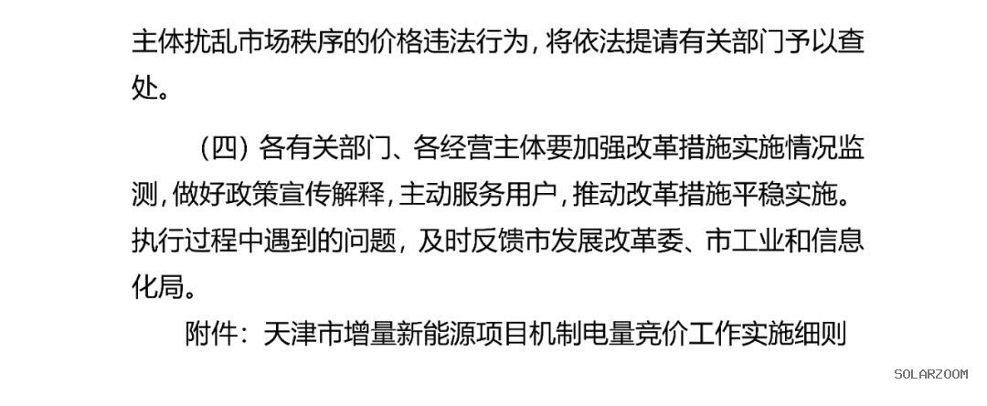 在制定《天津市深化新能源上网电价市场化改革实施方案》的同时,我们还制定了《天津市增量新能源项目机制电量竞价工作实施细则》,对竞价有关政策、竞价程序等进行详细规定,确保增量项目机制电量竞价工作有序开展。