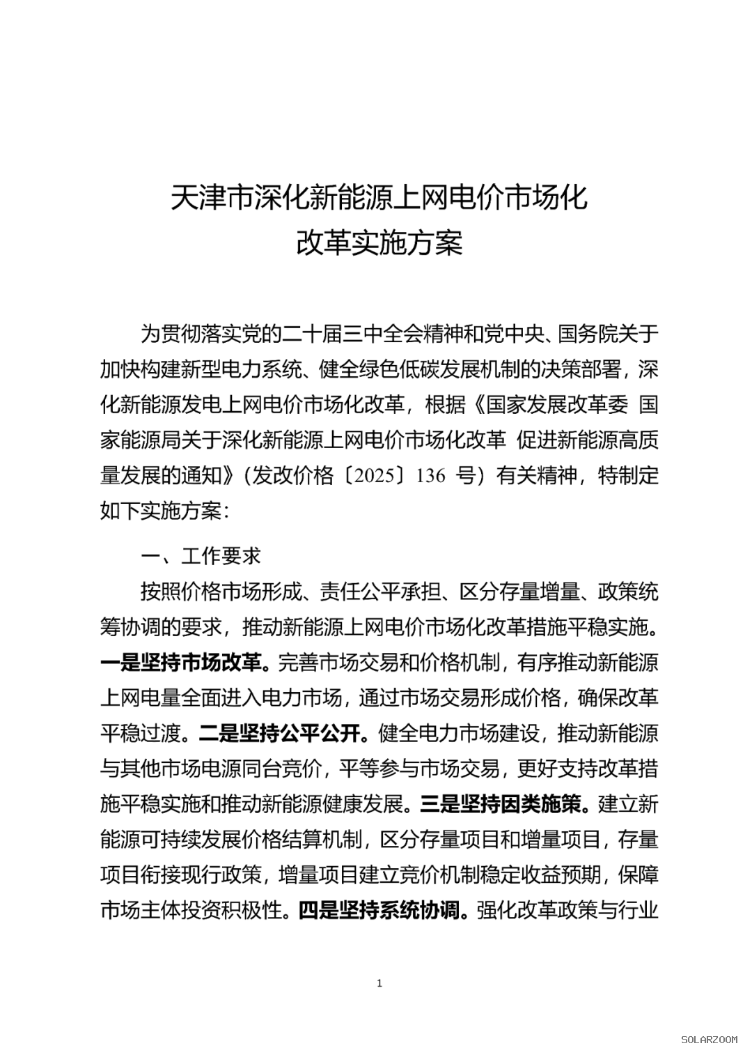 为贯彻党的二十届三中全会精神和党中央、国务院关于加快构建新型电力系统、健全绿色低碳发展机制的决策部署,落实电力市场化改革有关要求,国家发展改革委、国家能源局印发《关于深化新能源上网电价市场化改革 促进新能源高质量发展的通知》(发改价格〔2025〕136号),实施新能源发电上网电价市场化改革。为落实国家有关要求,推动改革措施在我市平稳落地,有序实现新能源项目全面入市,我们制定了《天津市深化新能源上网电价市场化改革实施方案》。