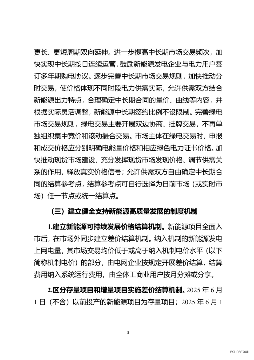 新能源发电具有随机性、波动性、间歇性,发电价格可能随着市场供需变化大幅波动,不利于新能源可持续发展。在推动新能源全面入市的同时,建立了新能源可持续发展价格结算机制。即:对纳入机制的电量,当市场交易价格低于机制电价时给予差价补偿,高于机制电价时扣除差价,差价结算费用纳入系统运行费用,由全体工商业用户按月分摊或分享。未列入机制的电量,不受机制电价保护,按照市场交易价格结算。通过这种“多退少补”的差价结算方式,让新能源企业能够有合理稳定的预期,从而促进行业平稳健康发展,更好助力“双碳”目标的实现。