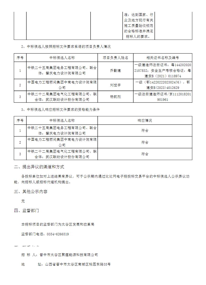 第一中标候选人为中铁二十五局集团电务工程有限公司、联合体:肇庆电力设计院有限公司,投标报价986769192.051元;第二中标候选人为中国电力工程顾问集团中南电力设计院有限公司,投标报价989090280.93元;第三中标候选人为中铁二十二局集团电气化工程有限公司、联合体:武汉联动设计股份有限公司,投标报价991244171.66元。