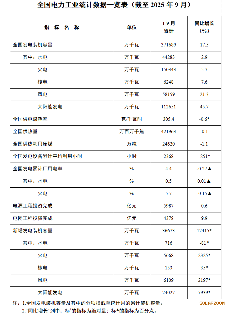 国家能源局发布2025年1—9月份全国电力工业统计数据。