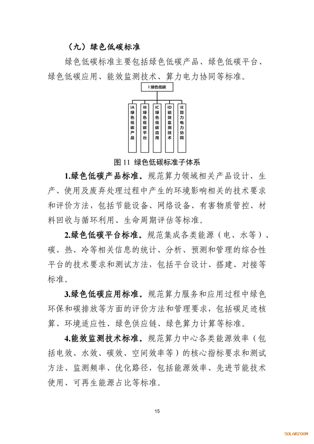 《指南》明确,算力设施标准主要包括机房建设、新能源及储能利用、高效供电与冷却、智能运维与管理等标准。新能源及储能利用标准,规范存储和利用可再生能源的技术要求和测试方法,以支持算力基础设施运行,包括新能源储能系统,可再生能源接入、储备、调度与利用等标准。高效供电与冷却标准,则规范供电与冷却系统的技术要求和测试方法,包括智能供电系统、高效冷却系统、能源管理系统等标准。