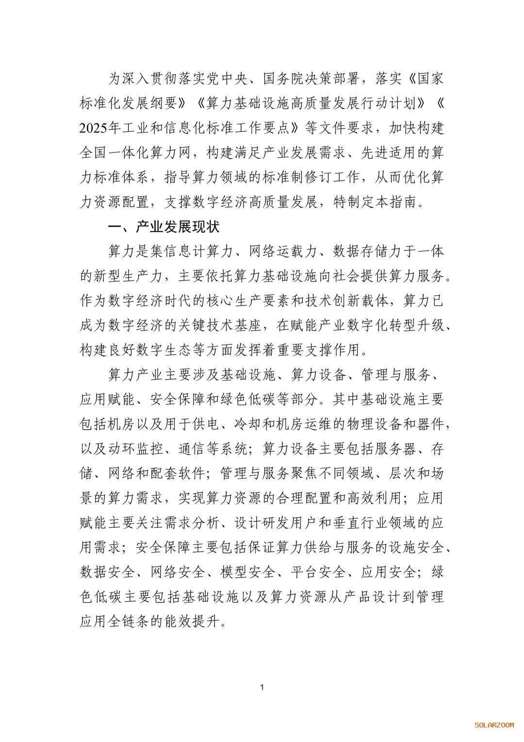 《算力标准体系建设指南(2025版)》(征求意见稿)原文如下: