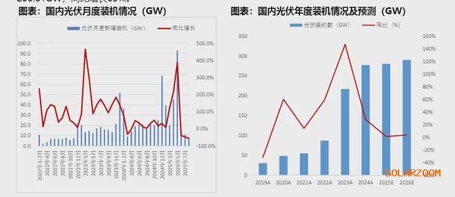 首先从上半年的增速看,是解释不了光伏和储能的分化的,两者增速都快,国内储能增速大概为68%左右,而光伏发电的新增装机量达到107%,乍一看似乎光伏更景气。