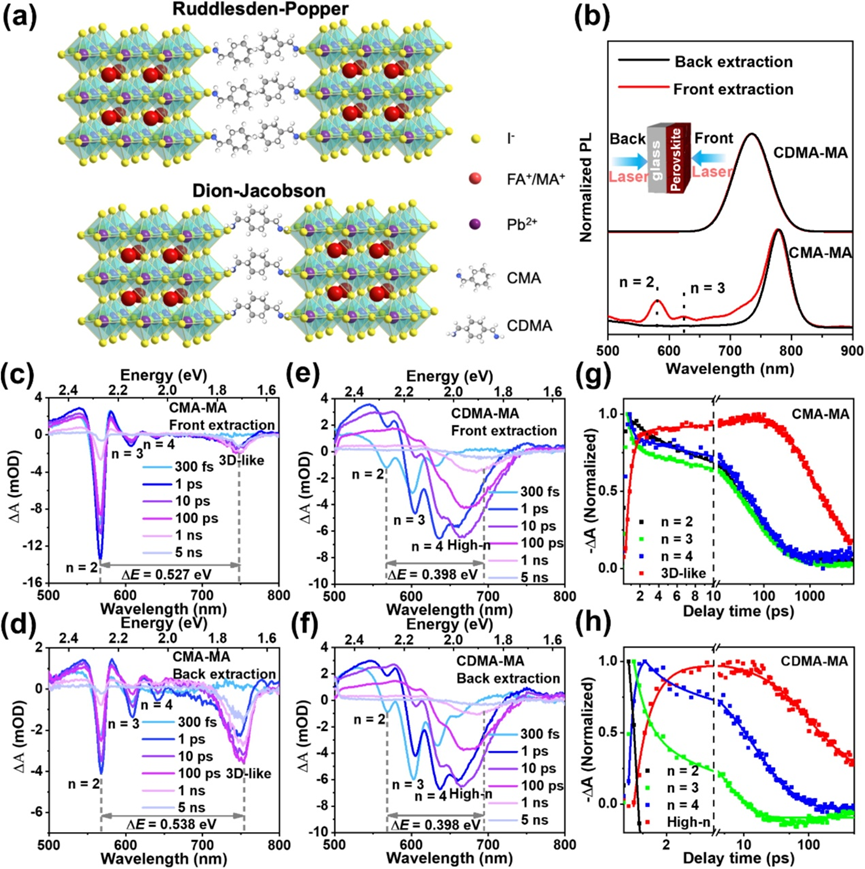 钙钛矿太阳能电池(PSCs)作为下一代光伏技术的核心方向,正在加速突破“效率-稳定性”这一关键产业瓶颈。目前,实验室中的三维(3D)钙钛矿电池效率已超过27%,但其实际应用仍受限于较差的环境稳定性。因此,如何在保持高稳定性的同时提升效率,成为当前产业与科研界共同关注的焦点。准二维(quasi-2D)钙钛矿是一种介于3D与2D结构之间的材料,不仅具备优异的光电性能,还表现出显著高于传统3D钙钛矿的环境稳定性,在太阳能电池应用中展现出巨大潜力。然而,目前准二维钙钛矿的效率尚落后于3D电池,原因是其有机基团的存在通常会带来多相共存结构,其不利的量子阱的排布方式将削弱电池性能。因此,深入理解量子阱排列如何影响载流子传输,进而实现对其有效操控,已成为进一步提升钙钛矿电池效率与稳定性的关键突破口。