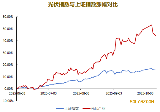 另外光伏指数自今年6月以来上涨43.84%,跑赢同期上证指数27.65个百分点。