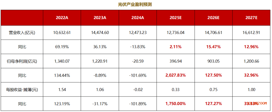 首先是盈利低点,光伏行业营收增长自2024年步入平台期,尤其利润在2024年深度承压,标志着行业正经历周期性调整。盈利预测的下修与利润收缩,直观反映了“需求弹性失灵”下的供需失衡。行业正从“激烈出清”转入“高速增长”的新阶段。