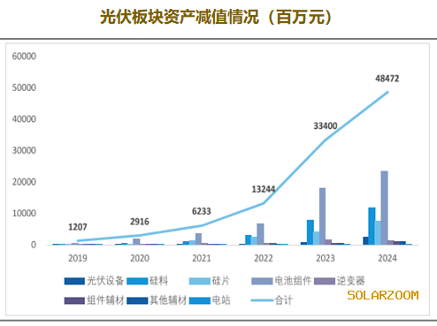 根据已披露的公开资料,受价格下跌影响,近几年光伏板块的资产减值明显加剧。