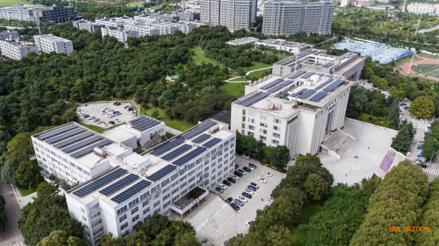 近日,云南工商学院分布式光伏发电项目正式建成并投入使用。该项目通过在图书馆、教学楼等建筑屋顶铺设总计约2500块光伏板,建成装机容量约1568kWp的光伏发电系统,预计年发电量约300万度,将以清洁电力赋能校园绿色低碳发展。