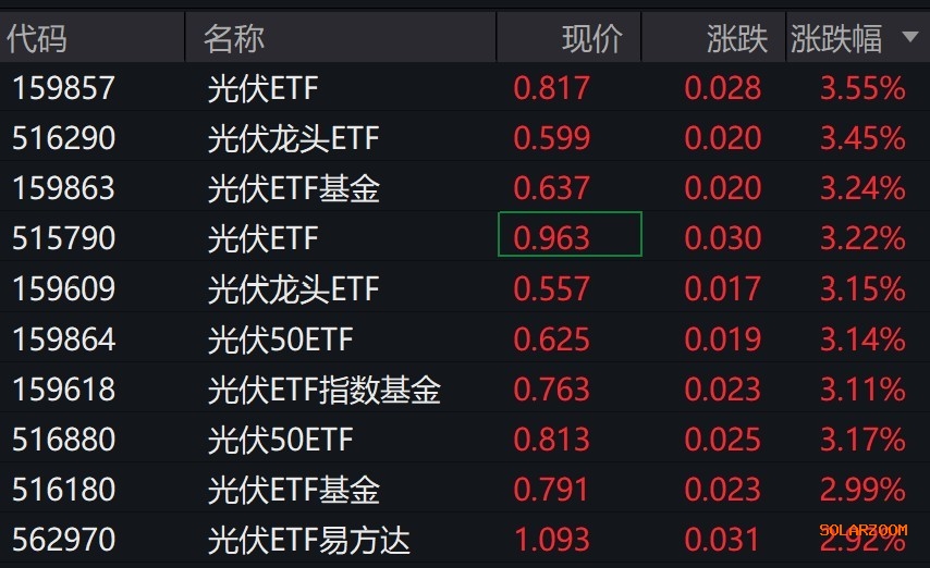 受盘面影响,光伏相关ETF涨超3%。