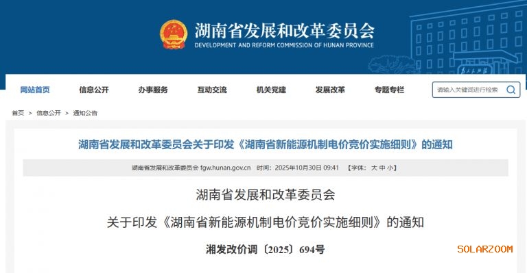 10月30日,湖南省发展和改革委员会发布关于印发《湖南省新能源机制电价竞价实施细则》的通知。文件明确,原则上每年10月开展新能源增量项目纳入机制电价的竞价工作。
