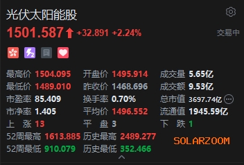 10月30日消息,港股光伏股盘初拉升上涨,其中,新特能源涨9%,协鑫科技涨超6%,协鑫新能源涨超4%,福莱特玻璃、阳光能源、信义能源涨超3%。