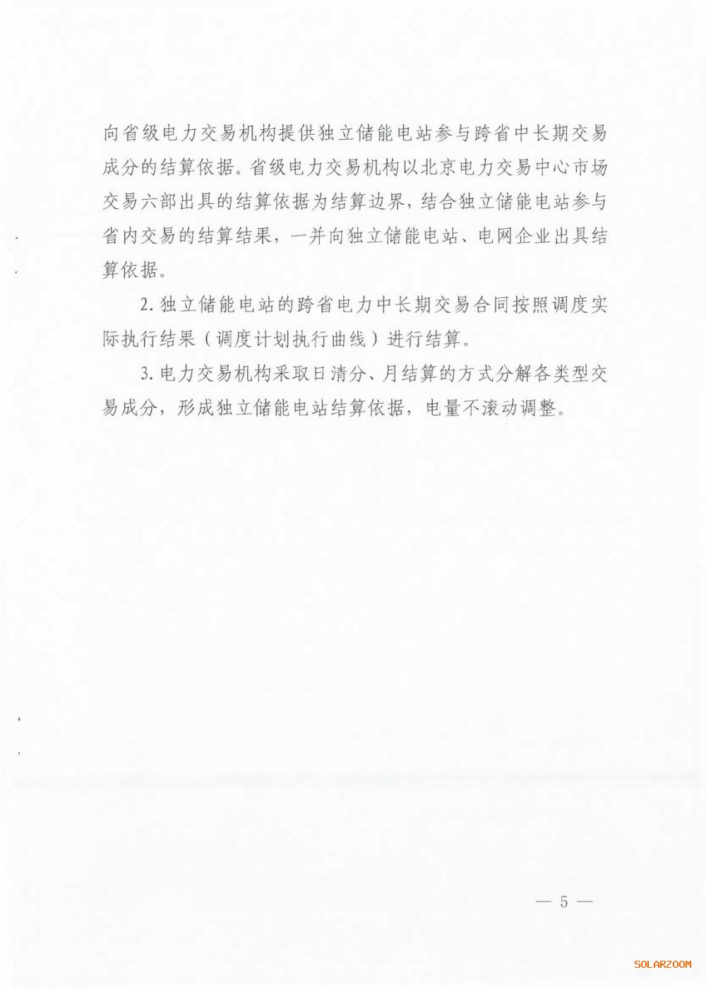 3.电力交易机构采取日清分、月结算的方式分解各类型交易成分,形成独立储能电站结算依据,电量不滚动调整。