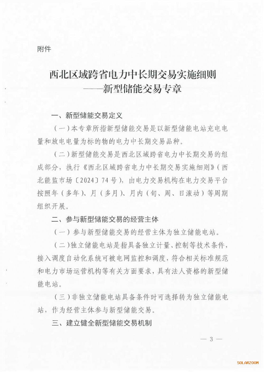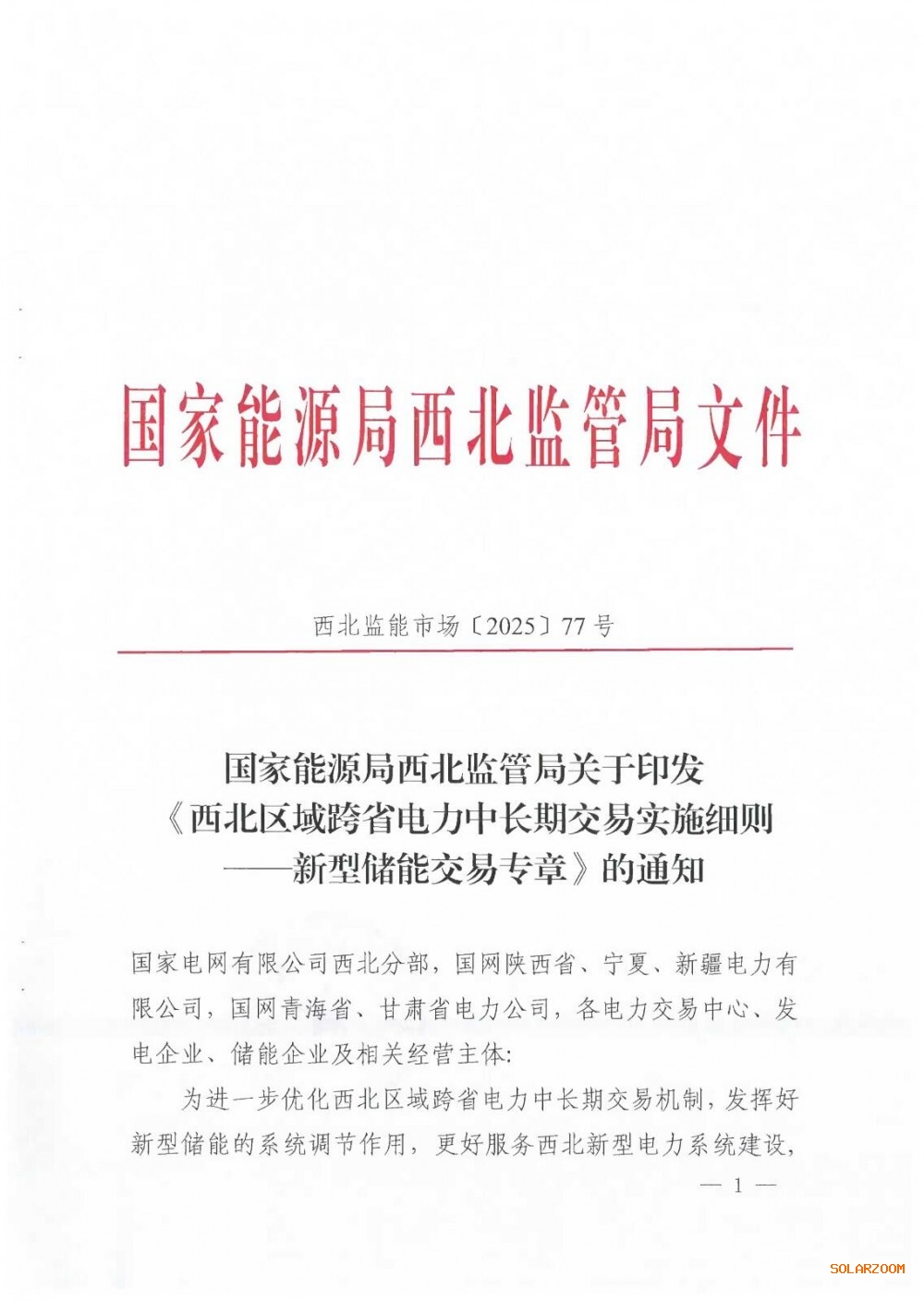 附件:西北监能市场〔2025〕77号 -国家能源局西北监管局关于印发《西北区域跨省电力中长期交易实施细则——新型储能交易专章》的通知.pdf