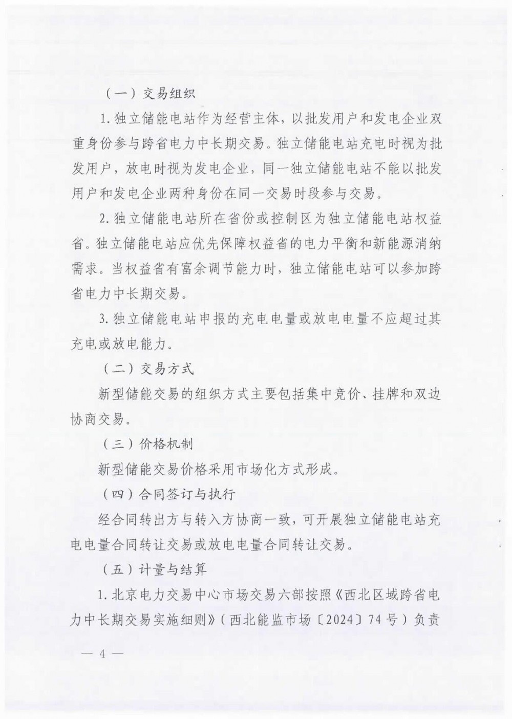 新型储能交易是西北区域跨省电力中长期交易的组成部分,由电力交易机构在电力交易平台按照年(多年)、月(多月)、月内(旬、周、日滚动)等周期组织开展。