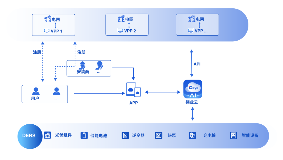在分布式能源加速并网的时代,德业云 VPP 网络通过“中枢智控 + 平台协同”的架构,打破单点系统的收益天花板。针对单一电站难以参与高门槛市场的痛点,“灵调”通过云端聚合接入包括 Evergen、GreenSync、Termina、Amber、LocalVolts、Powston 在内的多家澳洲主流VPP服务商,实现能源资产的跨平台聚合、调度信号的实时同步与收益数据的高效闭环。