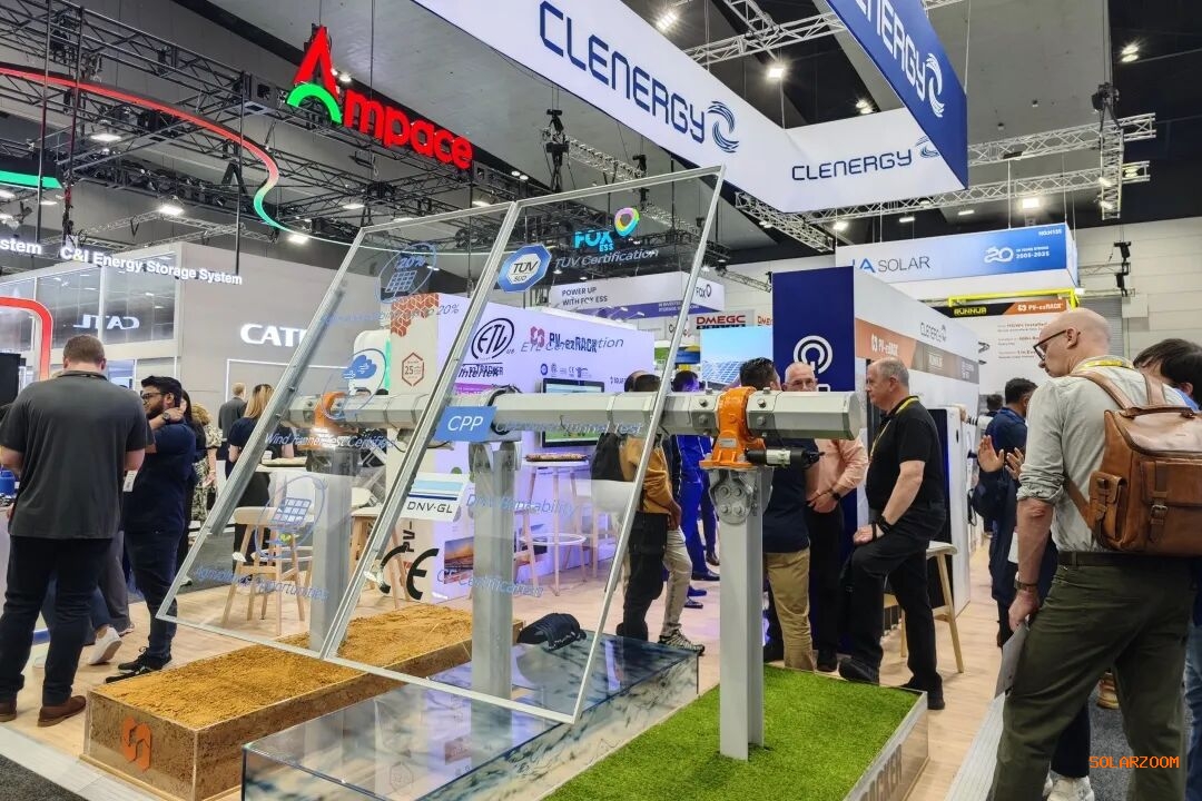 澳大利亚大型地面光伏市场预计将在未来几年持续增长。在此背景下,清源科技专为此类场景打造的ezTracker D1P120数字智能光伏跟踪系统,成为本次展台的焦点之一。