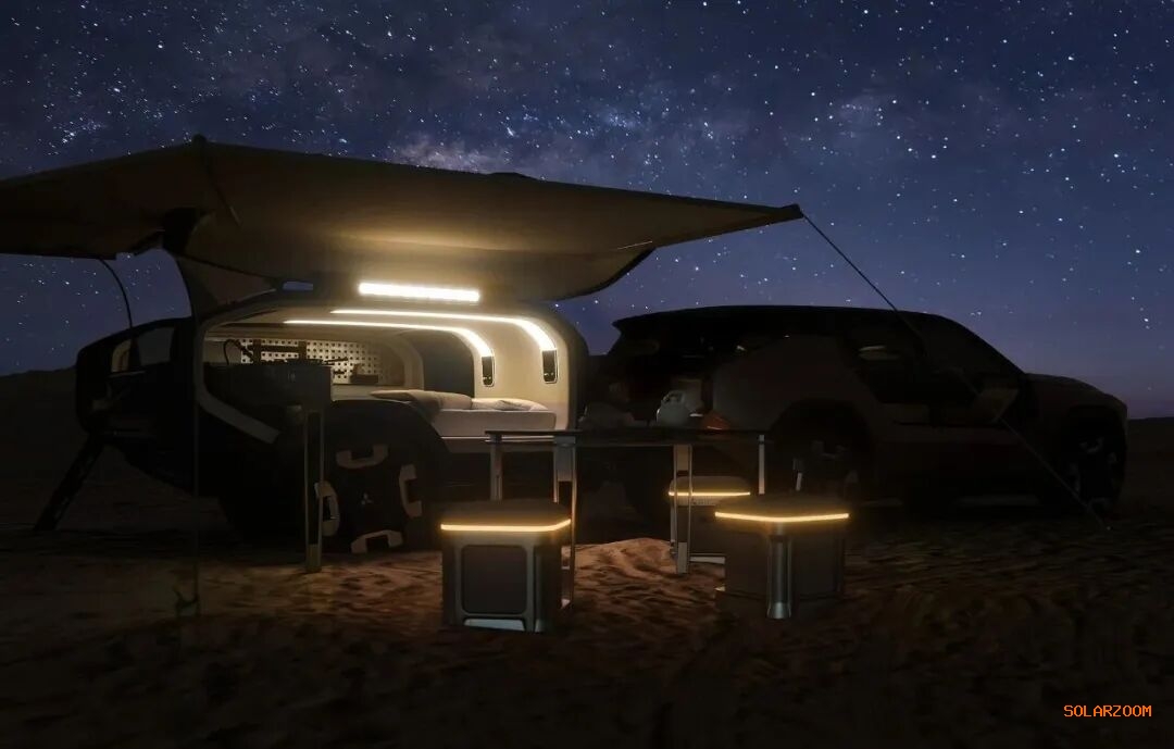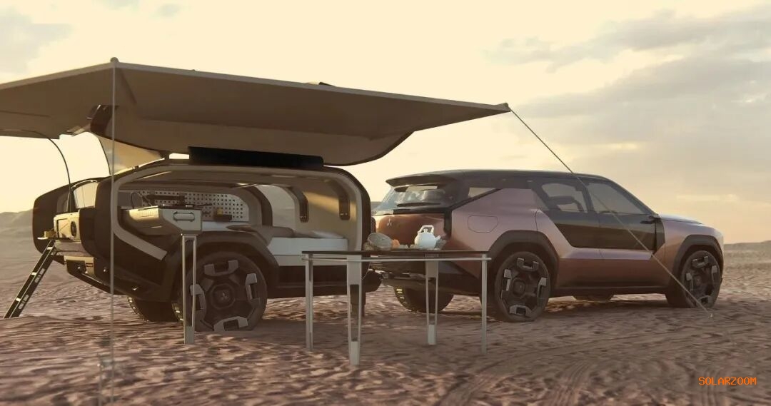 Elevance和拖车的车顶都配备了钙钛矿太阳能电池,比传统电池效率更高,还可以用于曲面,也可以支持双充放点,使PHEV系统更加高效。