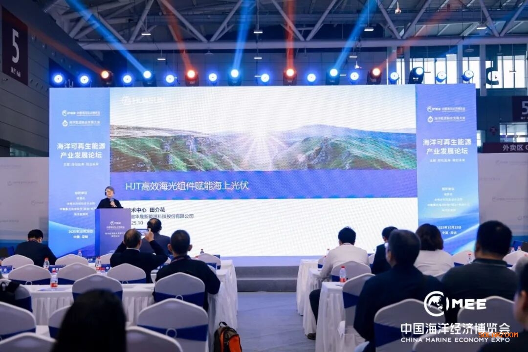 10月28日-30日,2025中国海洋经济博览会(以下简称“中国海博会”)在深圳国际会展中心隆重开幕。本届大会首次设立了“海上光伏”专项,华晟新能源作为全球异质结领军企业受邀出席大会,并进行了题为《HJT高效海光组件赋能海上光伏》的主题分享。凭借在海上光伏领域的卓越表现与技术实力,华晟新能源在大会期间荣膺“海洋之星卓越奖”。