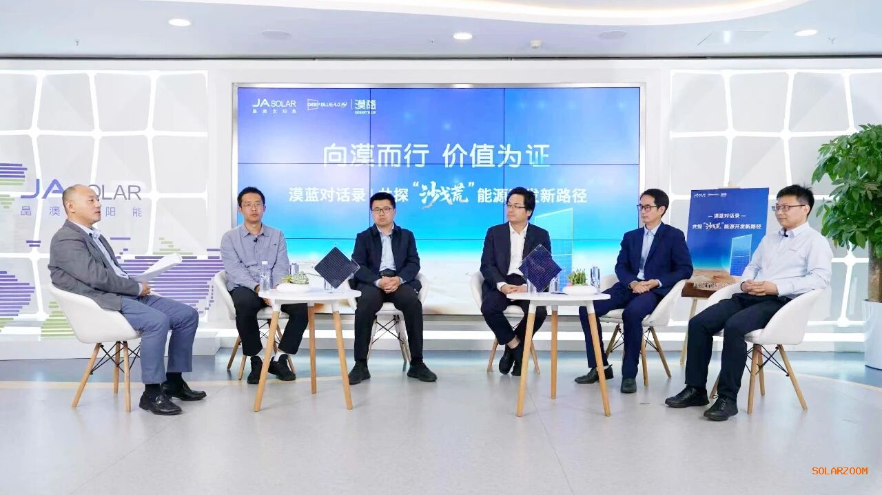 在大政方针指引下,“十五五”“沙戈荒”开发怎么干?如何符合政策要求,引领大基地建设潮流?近日,上海交通大学太阳能研究所所长、教授沈文忠,华能清能院光伏技术部主任赵东明,中国电建集团北京勘测设计研究院有限公司新能源科研专责胡意新,五环绿能(北京)工程科技有限公司工程设计经理陈石亮,晶澳科技产品与解决方案研发中心产品负责人共同参与了一场深度研讨,立足各自领域剖析“沙戈荒”热土蕴藏的机遇与挑战。